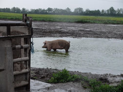 Bei bester Laune trotz strömendem Regen führte uns unsere Ausfahrt weiter in die ebene, ackerbaugeprägte Landschaft des Marchfeldes auf der Suche nach den Freiland-Wühlschweinen und Freiland-Rinderherden der Familie Harbich. Es war beeindruckend, wie Julia Harbich die Neugierde ihrer Tiere wecken konnte und wir die Rinder und Schweine sehr nahe erleben durften. Sowohl eine Herde mit Tiroler Grauvieh als auch ganzjährig im Freien gehaltene Wühlschweine (Kreuzung Schäbisch-Hällisch und Turoc) sind wirklich sehr seltene Anblicke in dieser Gegend!