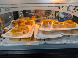 Zu unserer Freude dürfen wir Crostini mit überbackenen Kürbis und den aromatischen Maronikürbis probieren.