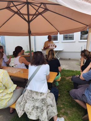 Zuvor, während der Busfahrt, gibt uns Kornelia Zipper, die Projektleiterin von AfterWork am Bauernhof, einen Einblick in