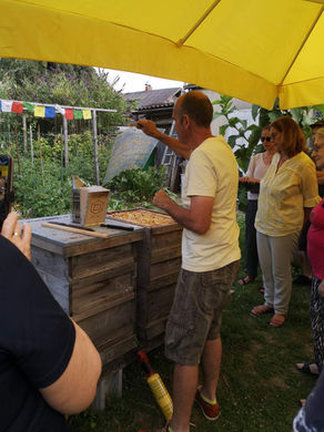 Nach der Honigernte, einigen köstlichen Honigbroten und angehäuft mit neuem Wissen zur faszinierenden Welt der Honigbiene geht es weiter zum 15min entfernten Bauernhof Adamah in Glinzendorf.